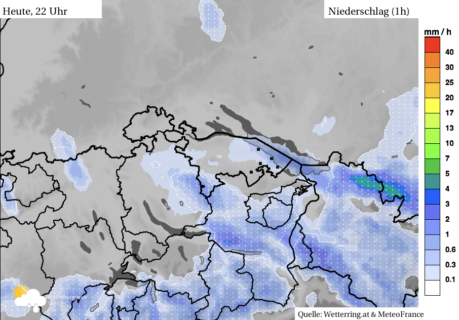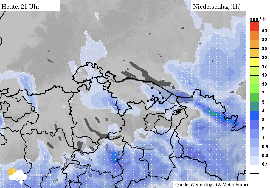 Am Abend noch einzelne Regen,- auf den Anhöhen auch Schneeregenschauer. In der Nacht trocken und Übergang zu aufgelockerter, hochnebelartigen Bewölkung.