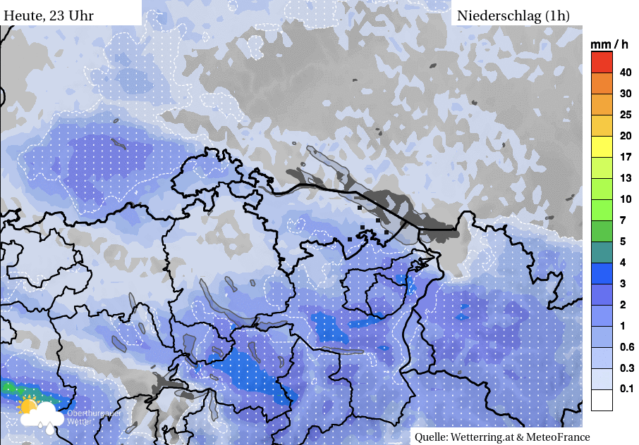 Am Abend letzte Schauer. Anschliessend trocken und mit sukzessiver Bewölkungsauflockerung teilweise klar. Gleichzeitig im Verlaufe der Nacht aus Westen aufziehende mittelhohe und hohe Warmfrontbewölkung.