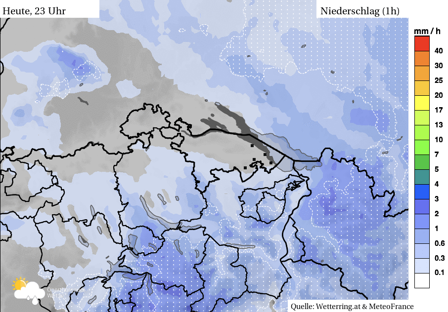 In der zweiten Nachthälfte häufig Regen, auf den Anhöhen gegen Morgen mit Flocken vermischt.