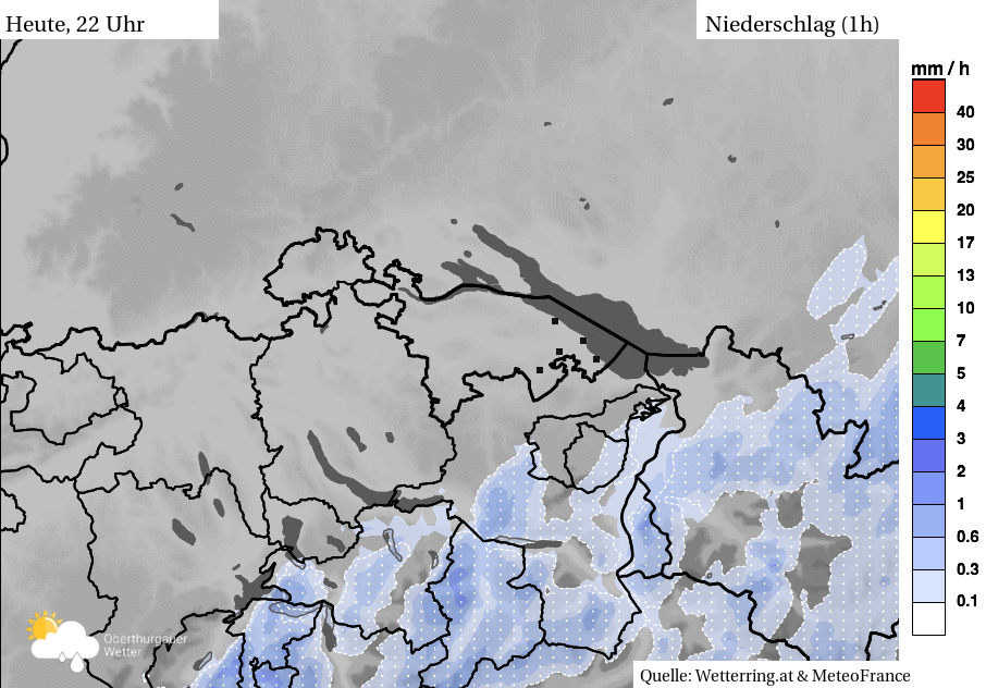 Am Abend und in der Nacht meist stark bewölkt aus Norden immer wieder Regen,- Schneeregen- und auf den Anhöhen Schneeschauer. Dazwischen trockene Momente.