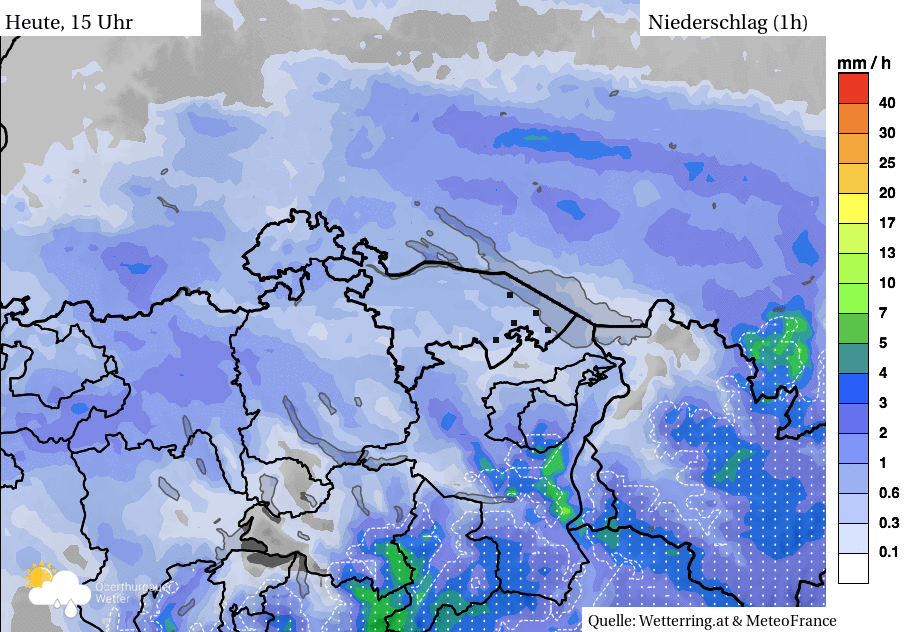 Das Hoch bleibt bei seinem Platz über Nordeuropa. Was aber dazu kommt ist ein Tief, welches sich über dem Mittelmeer befindet. Je nach Position transportiert es mildere und vor allem feuchte Luftmassen über die Ostalpen, wo sie dann via Österreich/Bayern – also ebenfalls von Nordosten – zu uns gelangen. Je nachdem können dabei ordentliche Niederschlagsmengen zusammenkommen. Aus diesem Grunde wird dabei von der schwarzen Bise gesprochen.