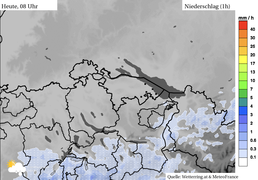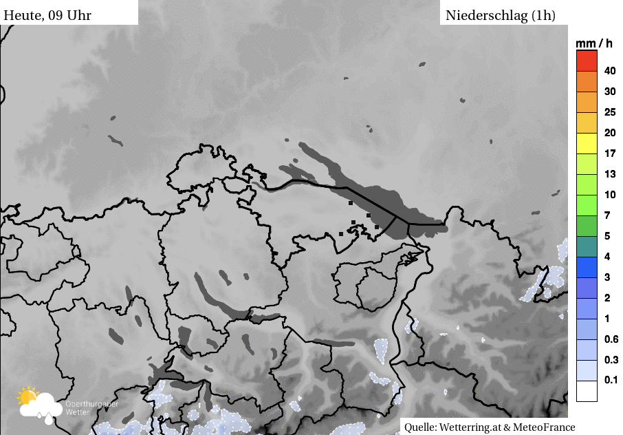 Im Verlauf des Vormittags zog sich der Föhn wieder an seinen ursprünglichen Platz zurück und der Südwestwind übernahm das Zepter. Nach Mittag setzte teils kräftiger Regen ein mit Summen zwischen 3 mm in Münsterlingen und bis 11 mm in Egnach und Horn (Stand: 19:26 Uhr)