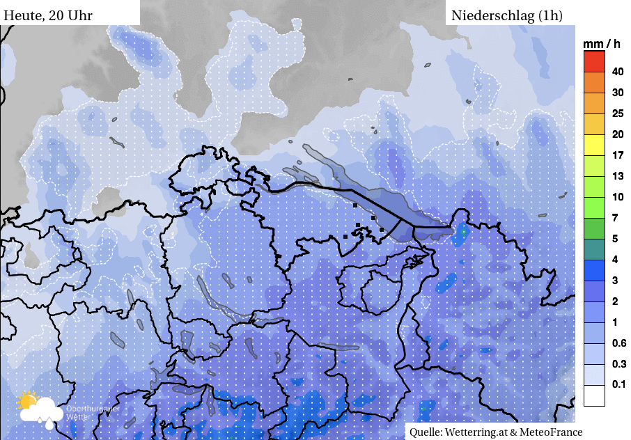 - Niederschlagssummen bis Sonntag: im Bereich zwischen 20 und 60 mm