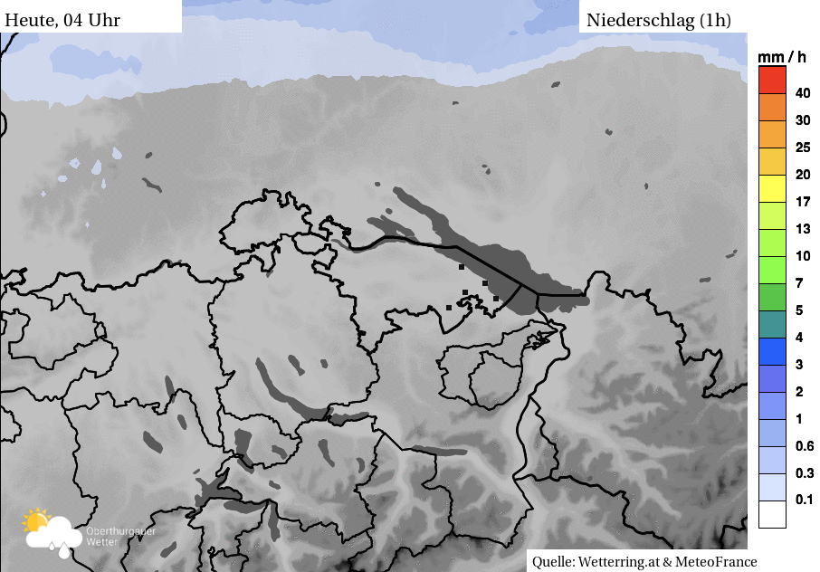 Bisher sah man auf dem «Amriswiler Wetter-Radar» jeweils die Regenintensität anhand der Farbskala sowie die Wahrscheinlichkeit für Hagel im Sommer (schwarz punktiert). Nun kann mit Einbezug der Schneefallgrenze sehr genau zwischen Regen und Schnee unterschieden werden.