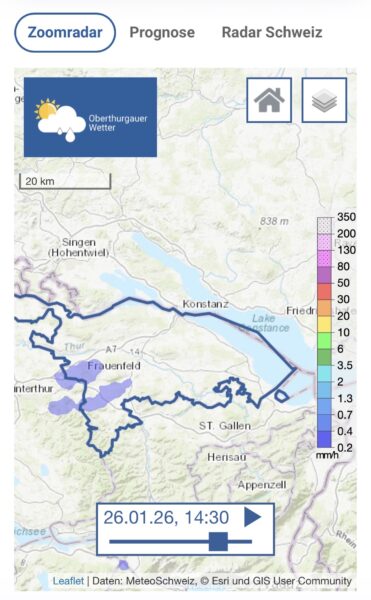 Seit dem dem vom Bund verordneten „Open Data“ im Frühling 2025, sind die Rohdaten von MeteoSchweiz nun für die gesamte Öffentlichkeit verfügbar. Dadurch konnte auch der Radar von Oberthurgauer Wetter auf diese Rohdaten zurückgreifen und umstellen, womit nun ein durchgehendes Radarbild ersichtlich ist.