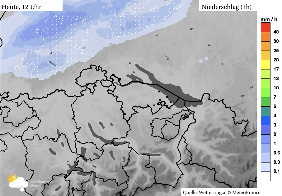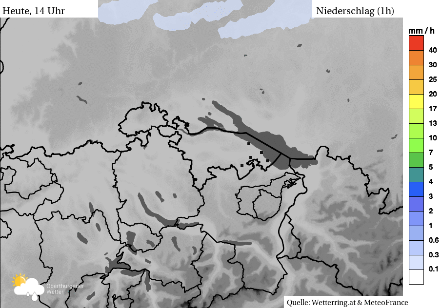 Seit Mitternach sind in der Region zwischen 26 und 42 mm Regen gefallen. Die Unterschiede sind dem konvektivem Niederschlagscharakter geschuldet, also an Orten wo es mit zusätzlicher Hebung der Luftmasse in kurzer Zeit zu intensiverem Regen kam.