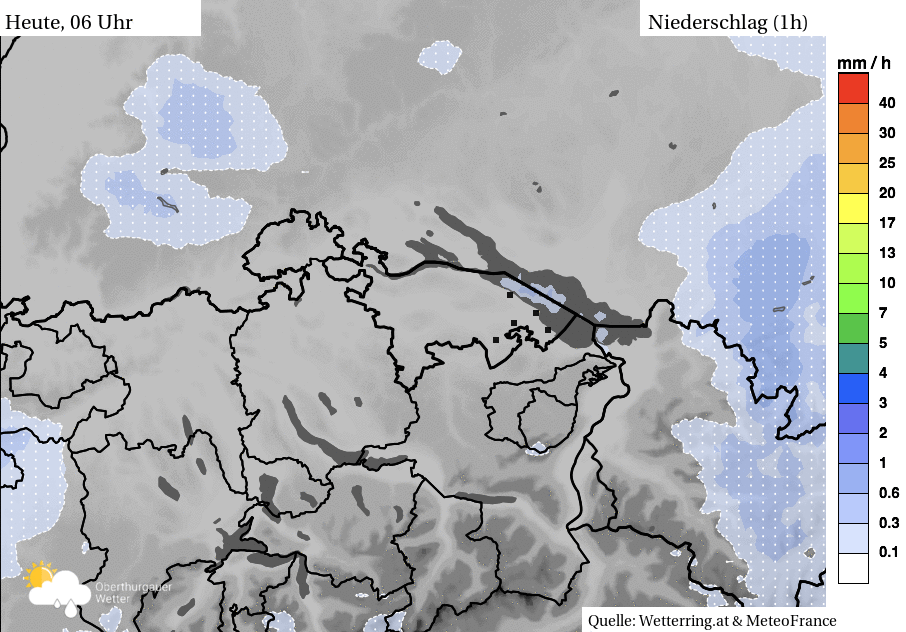 Am Freitag in der Früh erreicht uns aus Nordwesten die zum Tief gehörende, markante Kaltfront. Der Wind frischt auf und wird vorübergehend auch stark. Dabei setzt zuerst kräftiger Regen ein und nimmt danach einen schaueratigen Charakter an. Mit Einfliessen der Höhekaltluft (auf rund 5000 m Höhe ein Temperaturrückgang von – 25 Grad auf bis zu -40 Grad innert 24 Stunden) sinkt die Schneefallgrenze gegen Abend bis an den Bodensee runter. Graupel, Blitz und Donner sind auch möglich.